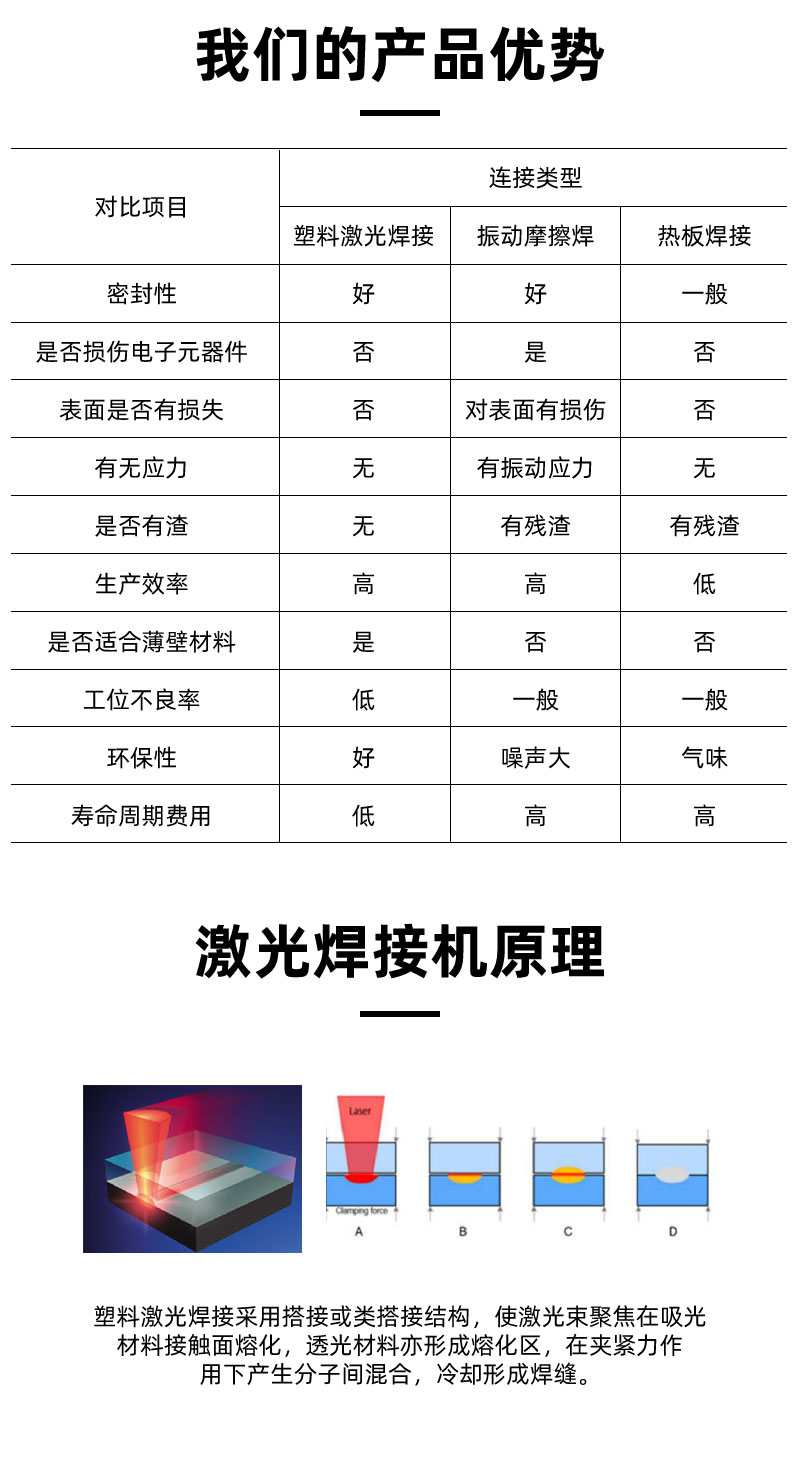 9299百瑞彩票 塑料作为一种常规的工业材料,广泛应用于工业品制造的各个领域,汽车,生活品,电子零部件,医疗,航空航天,甚至军用等,塑料的材料类型也随着工业应用的不断提高,在不断的更新。对于塑料的粘合工艺来讲,长时间来集中在涂胶,热压焊接,超声波焊接,高频红外等很多成熟的工艺方式,但是随着塑料产品工艺要求的提高,传统的塑料加工方式已经出现明显的不足。激光焊接在最近的工业制造应用上有明显的优势。当然,激光技术的不断提升,设备成本的不断降低也是促使该行业进入大批量普及应用的阶段。由原来的通用型机器去适配材料,进入到可以根据产品反向定制设备的阶段。在目前来看,相对传统工艺,激光焊接虽然优势明显,但是激光焊接并不是取代,而是对传统工艺的补充。激光设备的造价目前来讲还处在比较高的领域,所以一般情况下,工艺要求高(传统工艺无法完成)的加工应用,才会使用激光方式进行加工。下表是与常规传统工艺简易的对比资料: