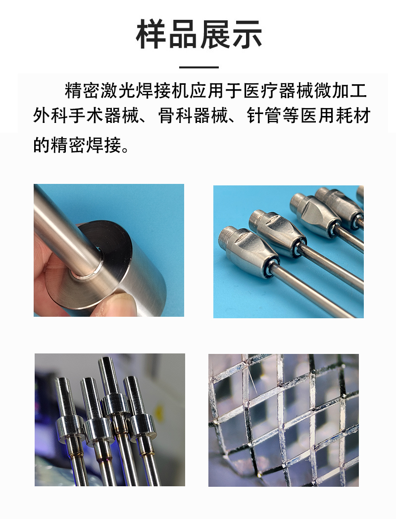 产品说明:适用于心脏支架、骨科螺钉(钛合金)、牙科种植体的无缝焊接。 激光焊接具有热影响区小、无物理接触、精度高等特点,尤其适合对洁净度和材料性能要求严苛的医疗产品