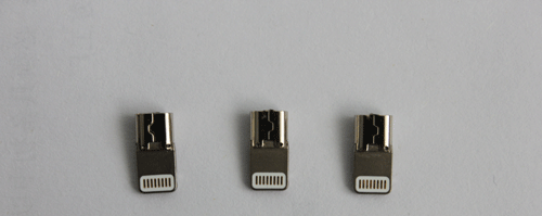 例如我们一个小小的充电头,这就要由我们的焊接机来做啦,它能够精准的,高密度的做出一个漂亮插头,例如苹果的插头,是不是很神奇呢。
